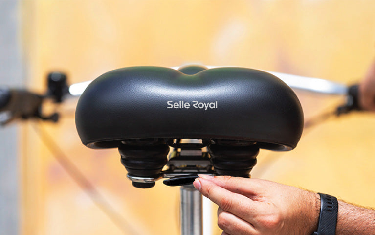 Wide bicycle saddle for smooth and relaxed rides in the city.