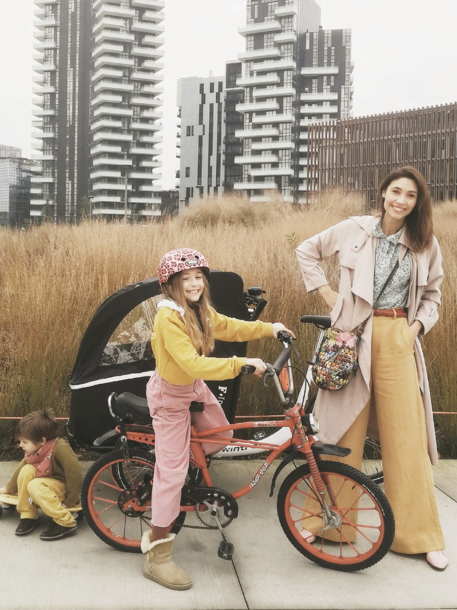 Antonella vertelt ons over hoe de mobiliteit in haar stad aan het veranderen is: “15 jaar geleden waren er heel weinig fietsers in Milaan. Maar vanwege de huidige mondiale gezondheidstoestand zijn veel mensen weer in het zadel gestapt. Daar zitten uiteraard ook mensen tussen die niet gewend zijn om te trappen en dus wat ervaring missen. We moeten een nieuwe manier vinden om de stad te bewegen en te ervaren—iets dat duurzamer is en minder hectisch. En bakfietsen passen zeker in deze nieuwe levensstijl.’